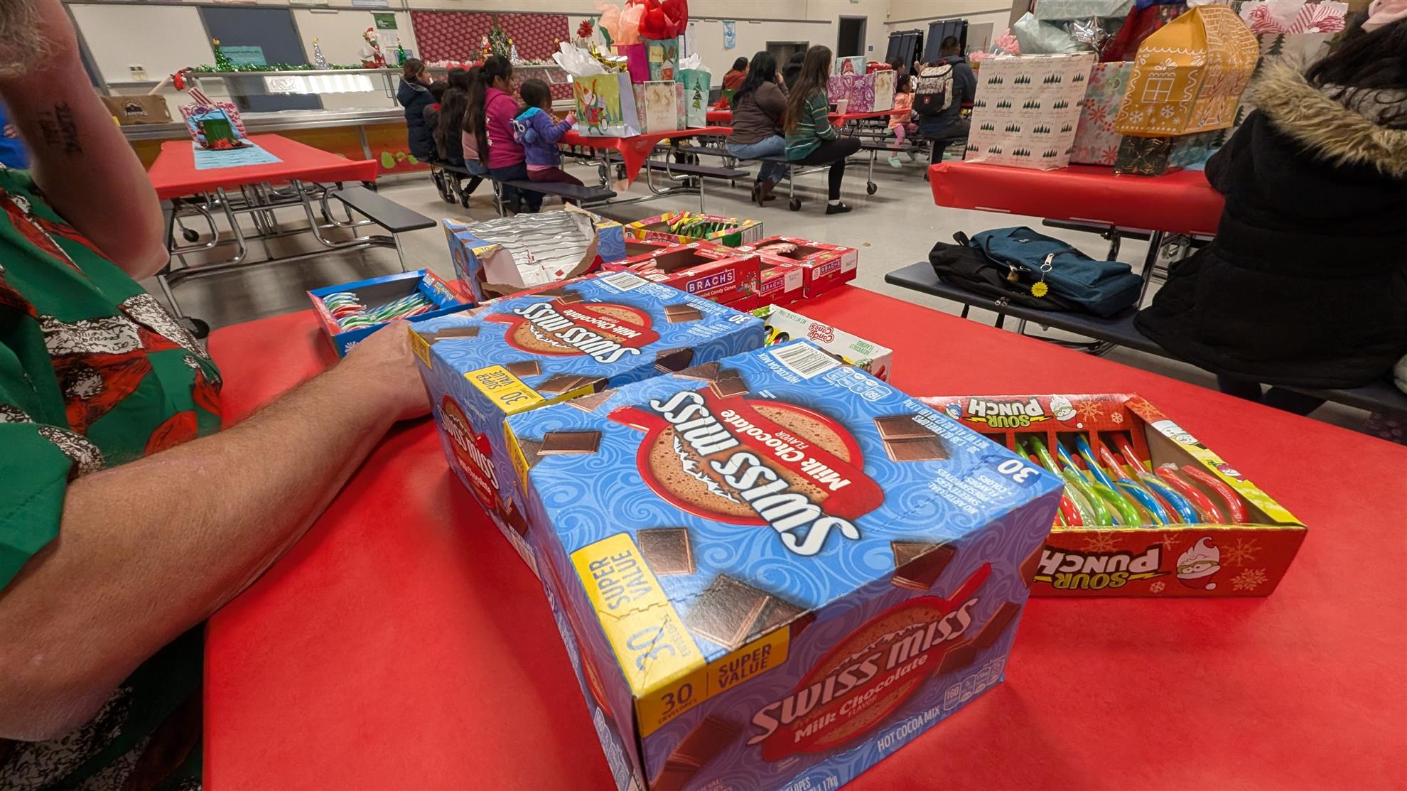 Jeremy McMahon graciously donated hot chocolate and candy canes for families and staff, who all met in the multipurpose room to giveaway gifts and sing songs for those families who are less fortunate. What a great event!